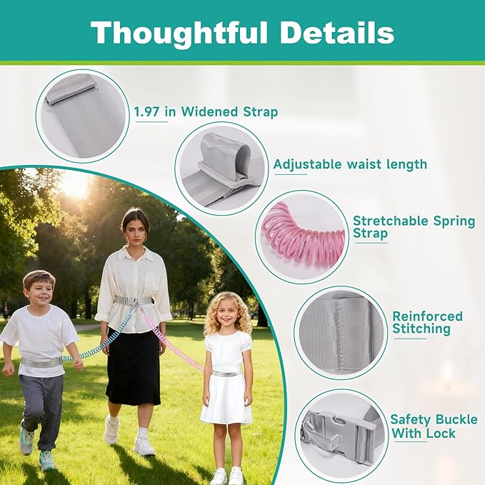 - Secure and Reassuring Connection: The waist-to-waist safety kids leash establishes a reliable connection between parents and children, preventing them from getting lost in dangerous or crowded environments, thus providing peace of mind to the caregivers.