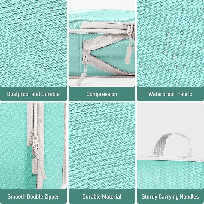 - Space-Saving Compression Design – Achieve up to 60% more luggage space with our dual-zipper compression system! Simply pack clothes into the cubes, zip the outer layer tightly, and compress bulkier items like jackets, sweaters, or seasonal home-storage fabrics. Perfect for maximizing suitcase capacity or organizing closets.
