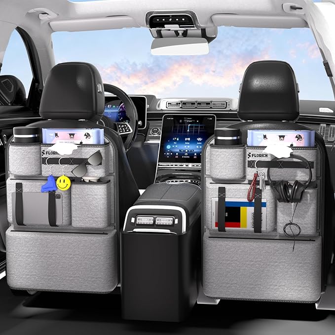 FLORICH 2 PACK PU Coated Fabric Car Backseat Organizer, Durable Large capacity Seat Back Organizer and Storage with 6 Pocket, Kick Mats Back Seat Protector for Kids Universal Fit