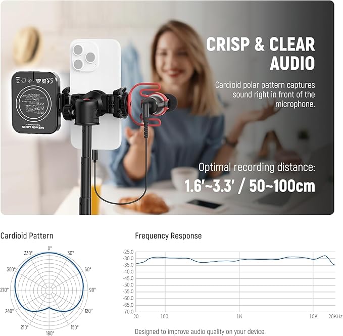 - 【Plug & Play Small Microphone】 Directly plug the VM10 mini portable mic into your device and record professional sound—no batteries are needed. It features a supercardioid polar pattern for clear audio pickup in a range of 1.6'-3.3'/50-100cm. The USB C connector, OTG adapters, and 3.5mm TRS cables are compatible with iPhone, iPad, Android phones, and cameras for vlogging, video recording, streaming, podcast
