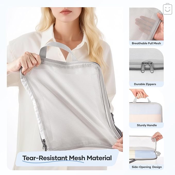 - Space-Saving Compression - Simply zip the compression zippers to reduce volume—no extra tools needed. Maximize luggage space efficiently, allowing you to pack more with less bulk for a lighter travel experience.