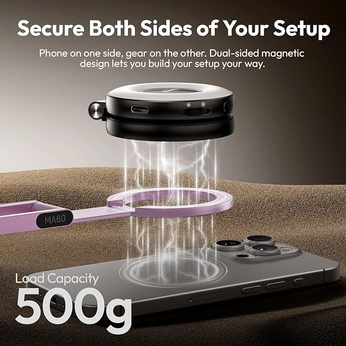 - 【Versatile for Multiple Scenarios】Whether you're shooting handheld, on a table, horizontally, vertically, or overhead, MA60 Magnetic Phone Tripod Stand adapts seamlessly to every setup, making it the ultimate companion for all your photography needs.