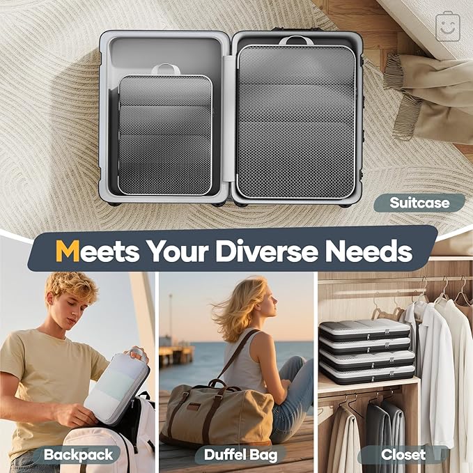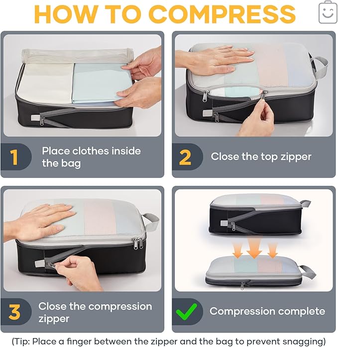 - Space-Saving Compression - Simply zip the compression zippers to reduce volume—no extra tools needed. Maximize luggage space efficiently, allowing you to pack more with less bulk for a lighter travel experience.