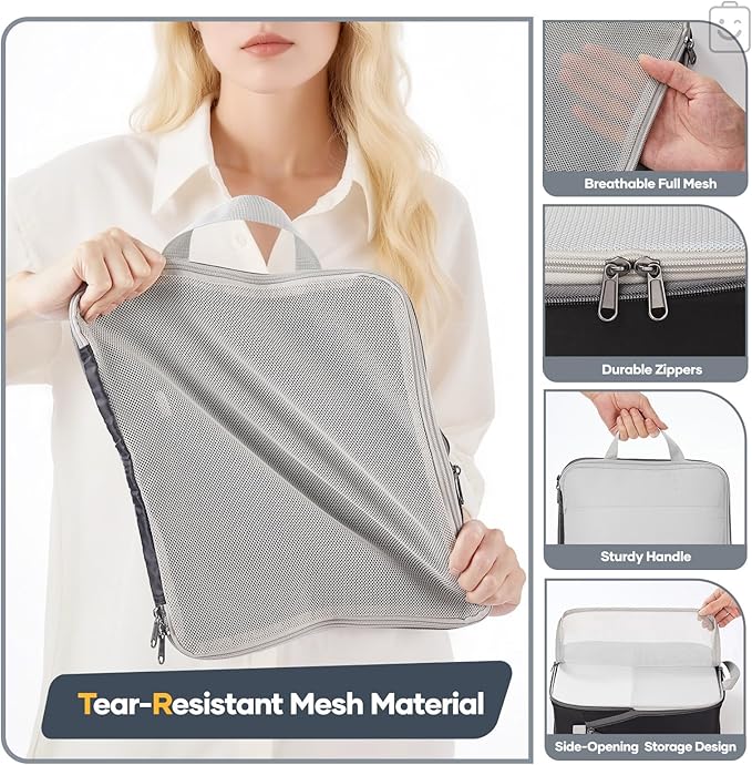 - Lightweight Yet Durable - Made of tear-resistant polyester and mesh with reinforced stitching for long-lasting use. The full transparent mesh panel allows easy identification, while dual zippers and side openings enable smooth packing and access.