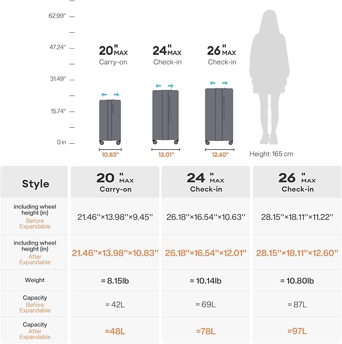 - Anti-Burst Zippers: Our expandable luggage features a Double-Layer Anti-Burst Zipper design which meets standards for increased durability. Carry everything you need with confidence during trips