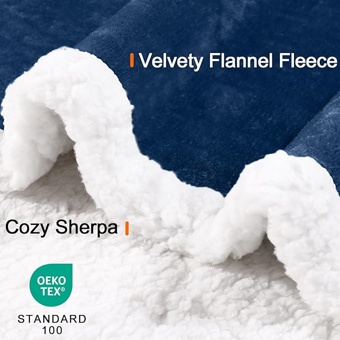 Smiry Waterproof Blanket Throw for Large Dogs Cats, Soft Reversible Dog Blanket for Sofa Couch Bed, Washable Leakproof Sherpa Fleece Furniture Couch Protector(30"x40", Navy/White)