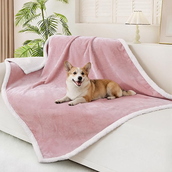 Smiry Waterproof Blanket Throw for Large Dogs, Soft Reversible Dog Blanket for Sofa Couch Bed, Washable Leakproof Sherpa Fleece Furniture Couch Protector(50"x60", Pink/White)