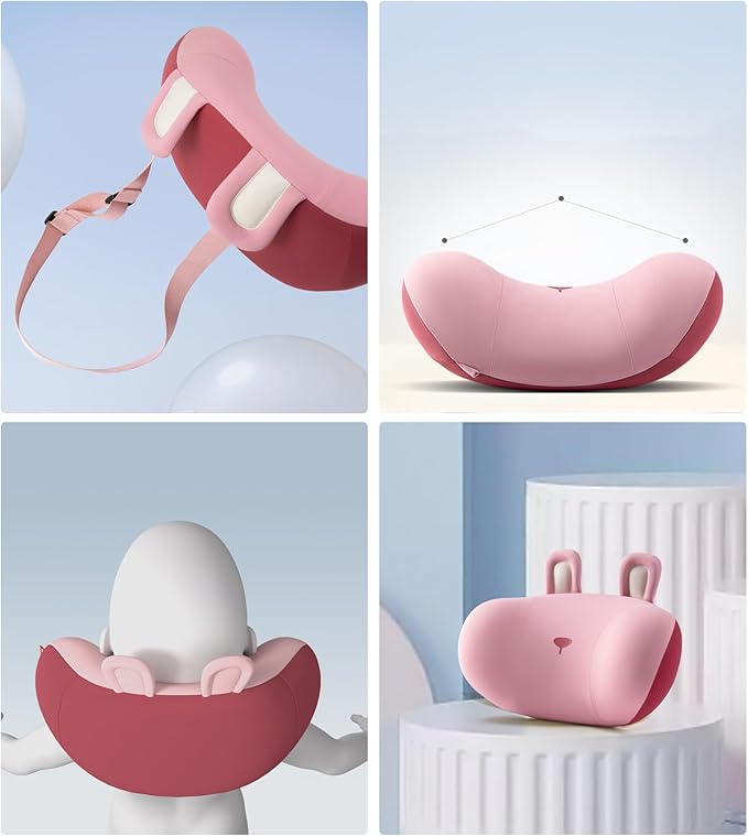 BEBAS Car Neck Pillow Travel - Adjustable Memory Foam Neck Support Pillow for Sleeping, Breathable & Machine Washable Cover, Soft Support for Adults & Kids - Gift (Pink - Rabbit)