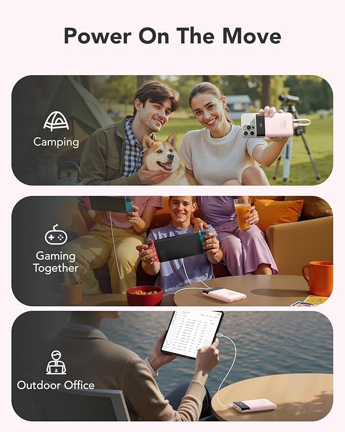 - 【Portable Charger with 2 Built-in Cables】 Features integrated Lightning and USB-C output cables. Eliminate the need for loose wires and charge your iPhone, iPad, Samsung Galaxy, AirPods, and other USB-C devices directly. The ultimate hassle-free charging solution for daily use and travel essential.