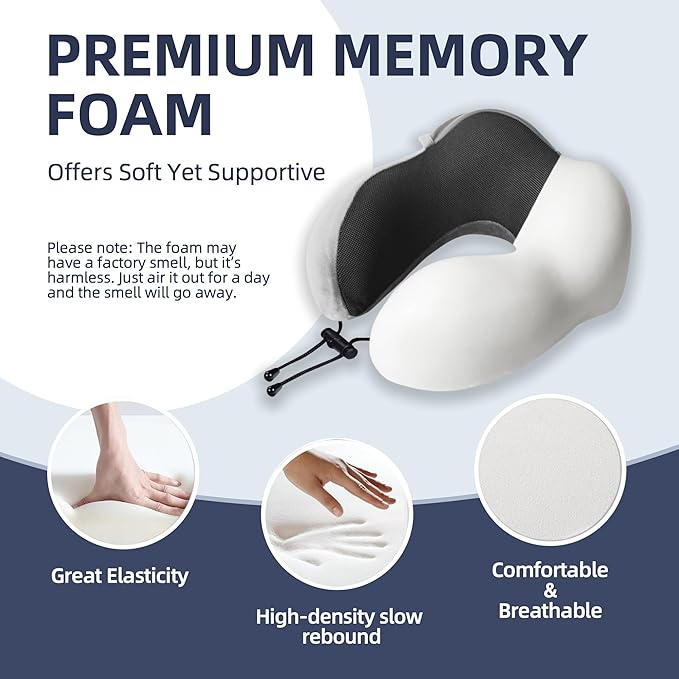 Travel Pillow with Extra Large Hood for Airplane Long Flights Privacy and Comfort Memory Foam with Velvet Cover for Road Trip Head&Neck Support for Plane Office Cars Sleeping & Rest (Light Grey)