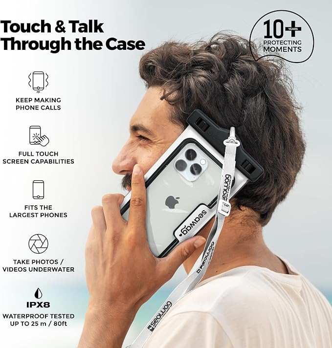 - Universal Fit, Adventure Ready: Unlike bulky cases, Seawag’s slim pouch fits most smartphones—even large models—while preserving full touchscreen use. Take photos, scroll, and answer calls directly through the clear cover.