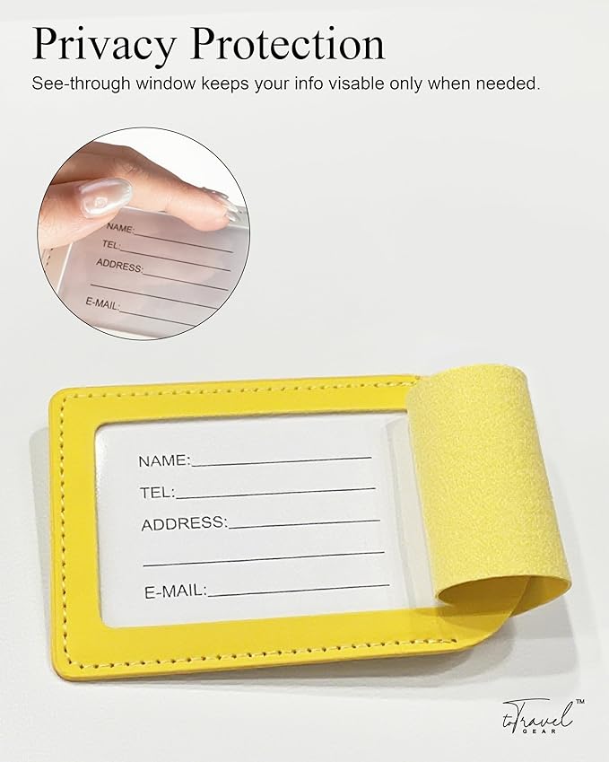 Luggage Tags for Suitcases,2 Pack PU Leather Privacy Protection Bag Tags Travel Accessories Essentials,Lemon Yellow
