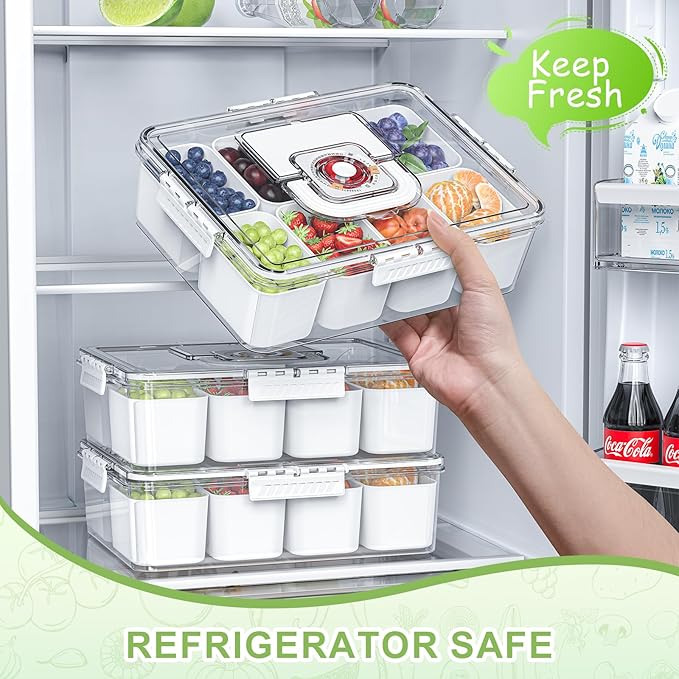 - 【No More Flavor Mix-Ups】Featuring 8 divided compartments, it ensures your treats stay organized and keeps sweet and savory separate. No more mixing and mingling—each section keeps your snacks pristine and ready to enjoy.