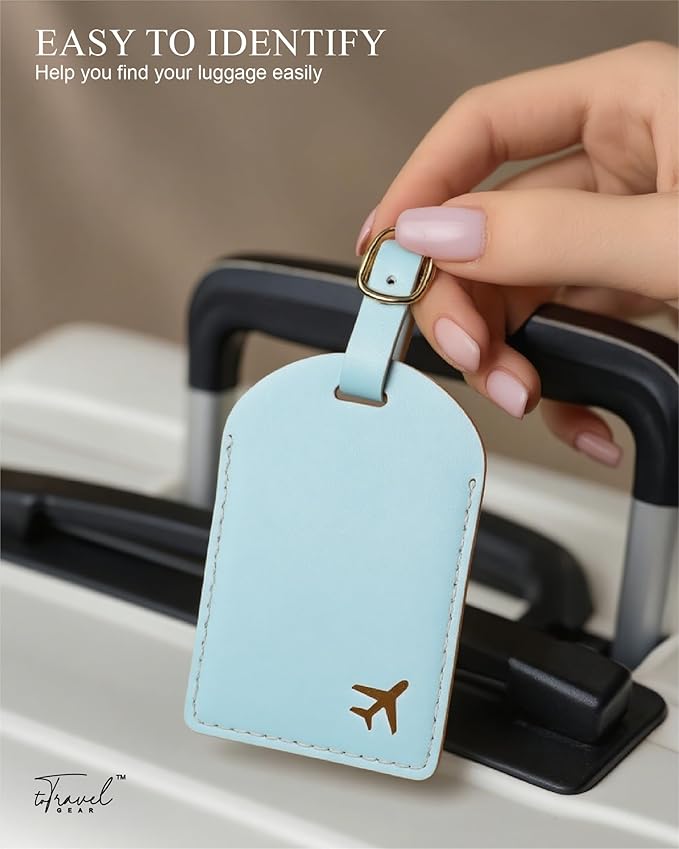Luggage Tags for Suitcases,2 Pack PU Leather Privacy Protection Bag Tags Travel Accessories Essentials,Light Blue