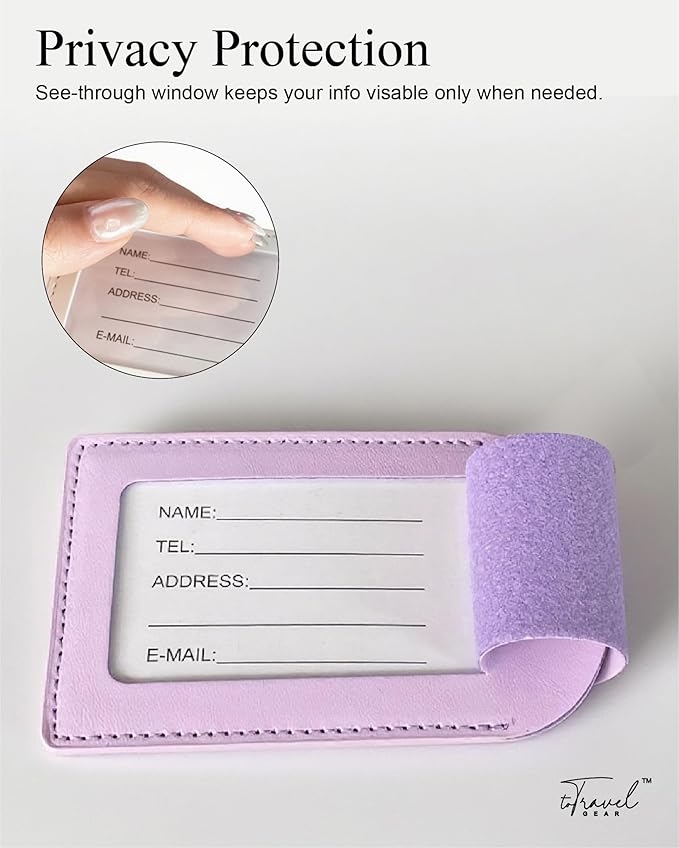 Luggage Tags for Suitcases,2 Pack PU Leather Privacy Protection Bag Tags Travel Accessories Essentials,Lavender