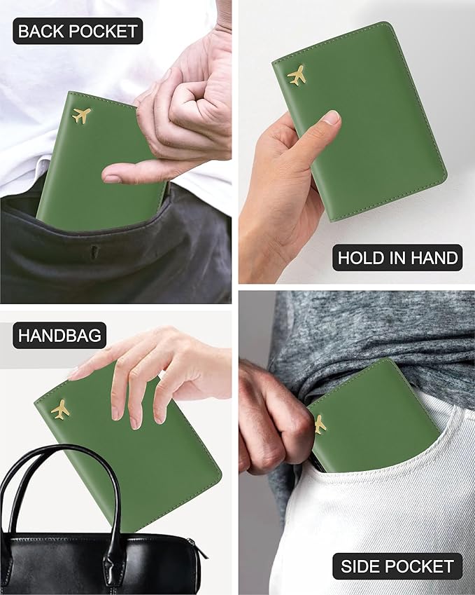 PU Leather Passport Holder Covers Case, Waterproof Rfid Blocking Travel Wallet Passport Holder(Olive Drab)