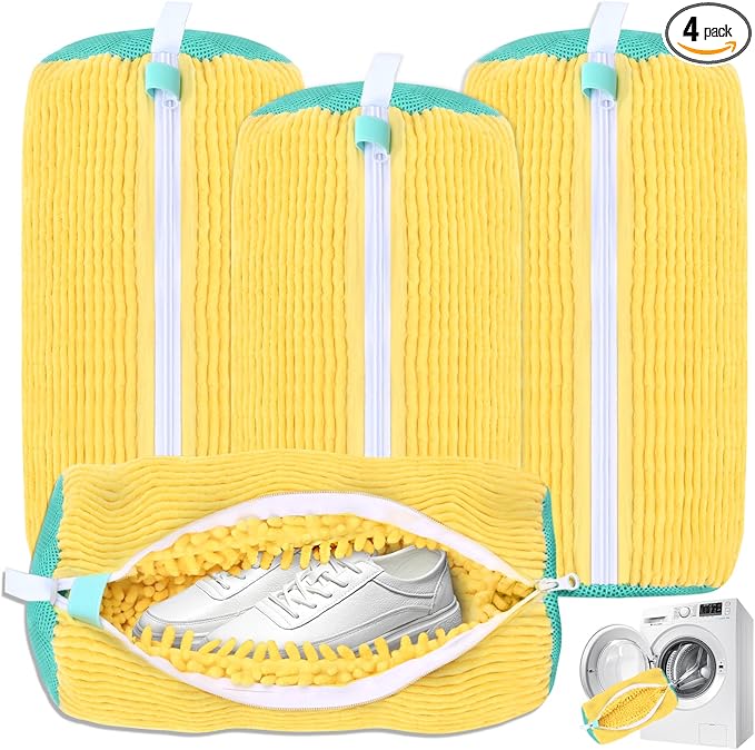 Shoe Washing Machine Bag, Shoe Cleaning Bag, Reusable Laundry Shoes Bag for Washer & Dryer Cleans & Protects All Shoes Types 4PCS (Yellow)