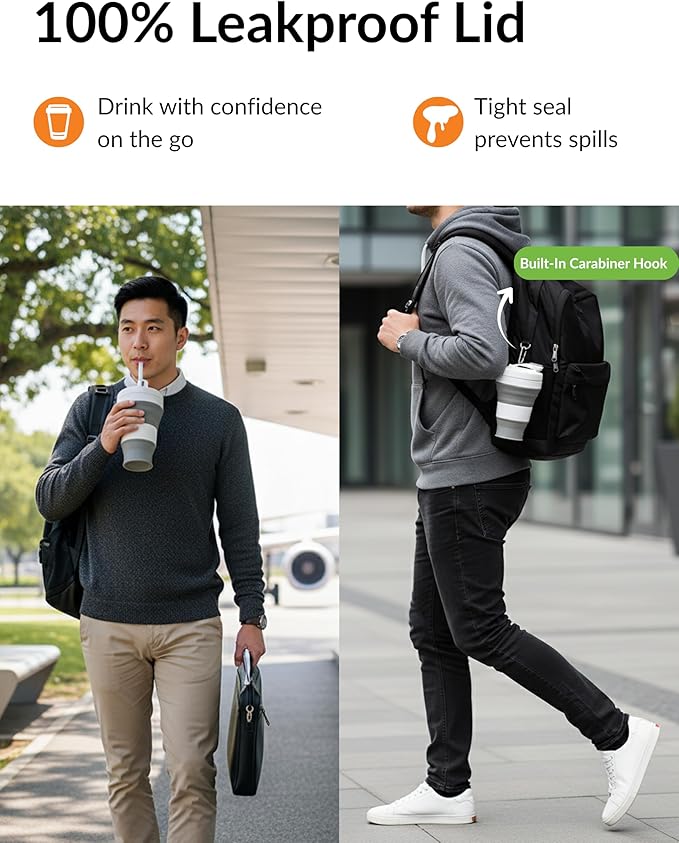 - Leakproof & Easy to Carry – Stay Hydrated Anywhere: Engineered with a secure lid and leakproof collapsible bottle design, this bottle prevents spills and messes in your bag. The strong carabiner clip makes it easy to attach your outdoor water bottle to backpacks, belts, or gym gear, keeping hydration within reach anytime. Whether you’re going to the gym, hiking trails, camping in the wild, or commuting to work, this portable silicone bottle delivers hassle-free use.
