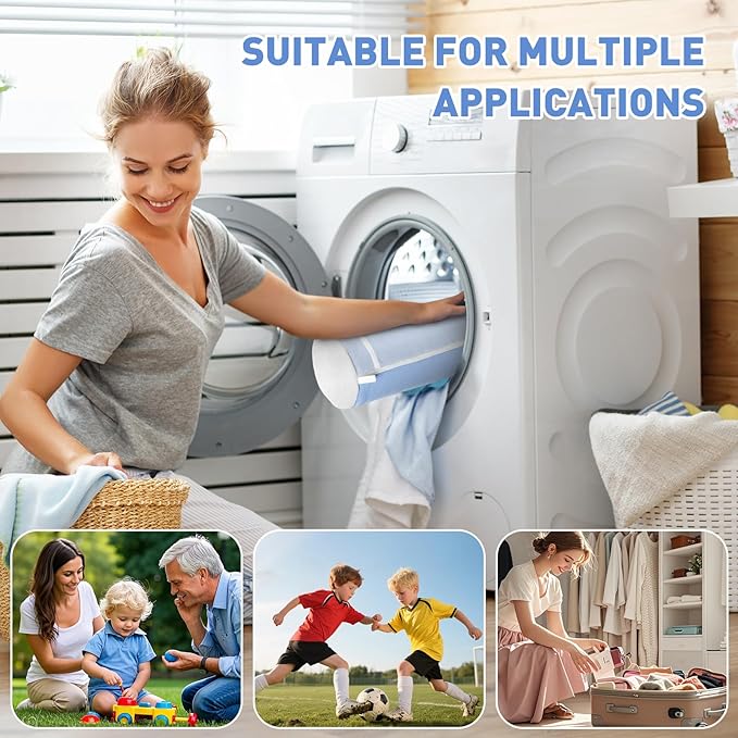 - Multi-Functional & Travel-Ready: Laundry shoe bag for washer and dryer can wash 1 pair of sneakers, tennis shoes, or multiple pairs of kid's shoes at once. Soft structure allows for easy rolling or folding, making it not just a shoe washing bag but also your go-to storage helper! Not recommended for washing machines with agitators