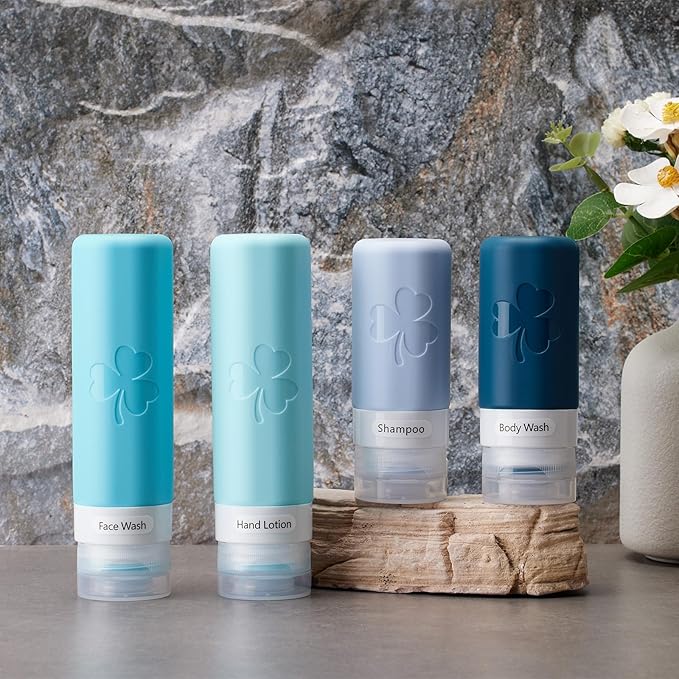 - 3 oz & 2 oz Leak Proof Travel Bottles: Our travel bottles feature an advanced triple-layer leak-proof design with a no-drip valve protecting your luggage from messy spills. Also our silicone travel bottles for toiletries can stand upright on either end for easy storage and dispensing.
