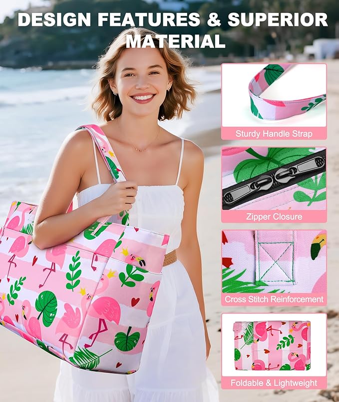- Multifunctional Usage: Our oversized beach tote bag is a versatile companion for various occasions, including family beach time, pool parties, picnics, and shopping. It effortlessly adapts to your needs, doubling as a travel bag, gym bag, pool bag, sports bag, and even a carry-on luggage handbag for traveling. Notably, its compact and lightweight design allows for easily folded and conveniently stored in your backpack or luggage case.