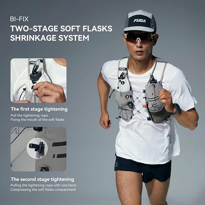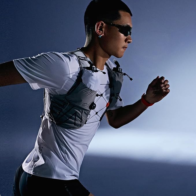 - 3D CUTTING: Using vest-style 3D cutting, the center of gravity of the hydration pack is fixed in a higher position on your torso, the weight balance is transmitted to the entire torso, shoulders and chest weight balance, reducing the pressure on your hips and lower limbs, and the body maintains dynamic balance during running, twists comfortably, and stretches freely