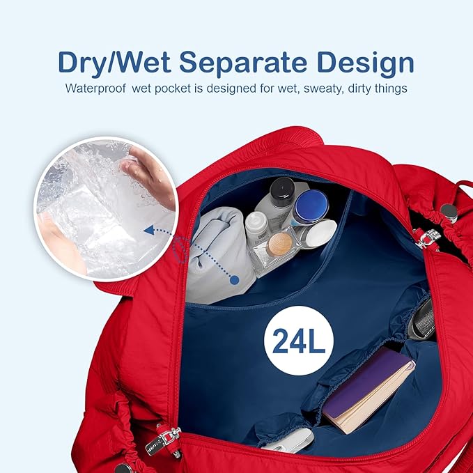 TOPDesign Travel Duffel Bag for Women, Puffer Gym Bag Sports Tote with Wet Pocket, Carry On Weekender with Luggage Sleeve (Red)
