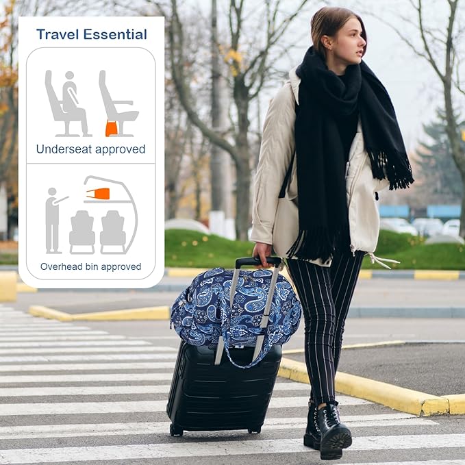 TOPDesign Travel Duffel Bag for Women, Puffer Gym Bag Sports Tote with Wet Pocket, Carry On Weekender with Luggage Sleeve (Bandanna)