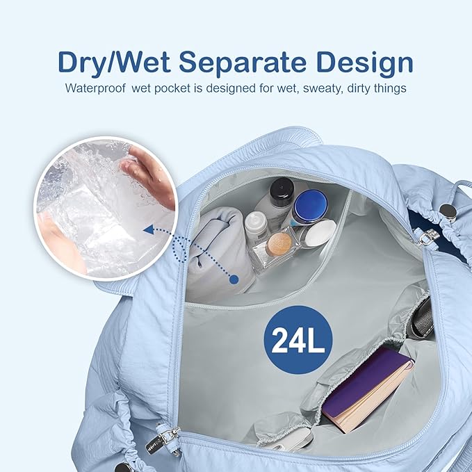 TOPDesign Travel Duffel Bag for Women, Puffer Gym Bag Sports Tote with Wet Pocket, Carry On Weekender with Luggage Sleeve (Ocean Blue)