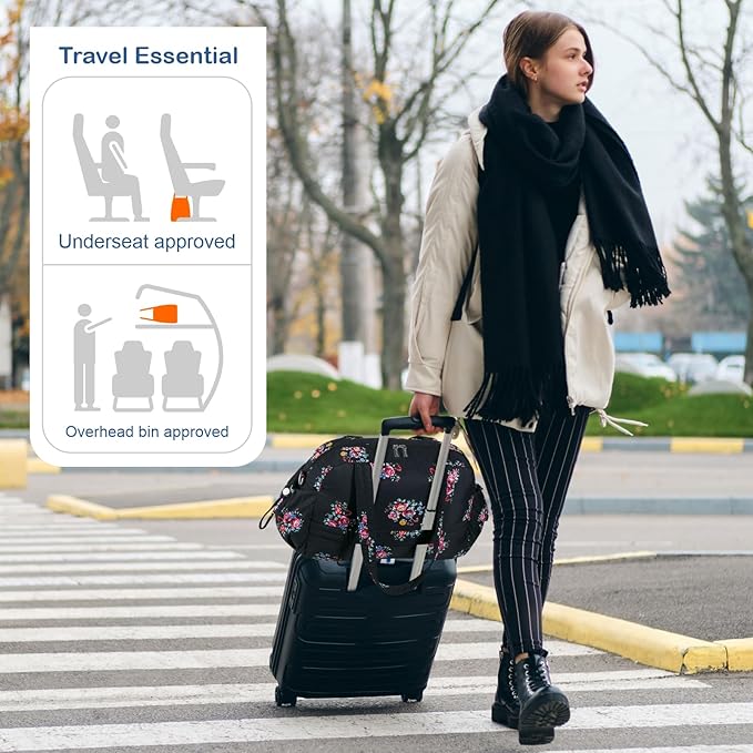 - AIRLINE FRIENDLY: Perfect as an airlines personal item travel bag. Fits effortlessly under seats and in overhead bins. The trolley sleeve on the back keeps the bag stayed on the suitcase making travel a breeze. Detachable shoulder strap with padding enables versatile carrying options - shoulder-slung, or crossbody.