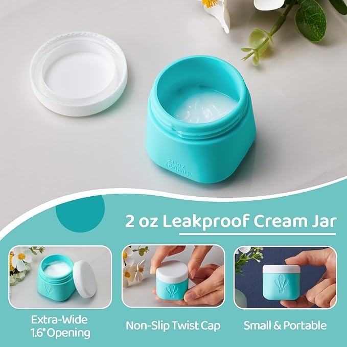 - 2oz Wide-Mouth Silicone Cream Jars: Extra-wide 1.6-inch opening (4cm) allows easy scooping with fingers or spatulas, paired with anti-slip screw lids for leakproof storage of thick creams, balms, or serums. INSFIT small travel containers for creams are your ideal travel accessories.