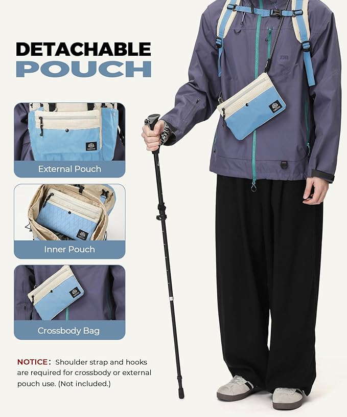 - Original Pocket Tightening Design: Original tightening method for backpacks, two-point stress can easily open and close, making the opening and closing method easier. The built-in small bag can be used as a private pocket or can be taken out separately to store items.