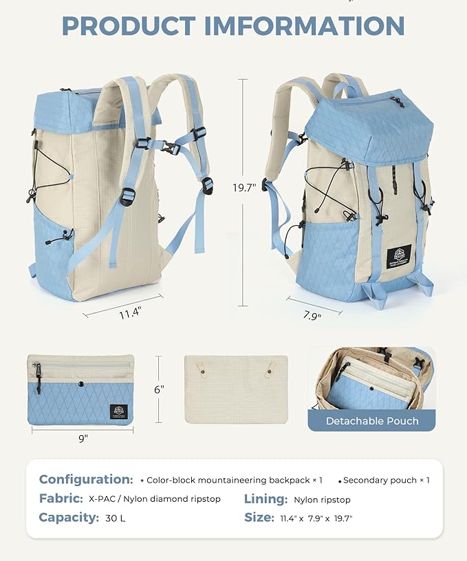 - Waterproof and Multi Purpose: This lightweight backpack made of X-PAC, durable and perfect for travel backpacks and outdoor adventure backpacks.
