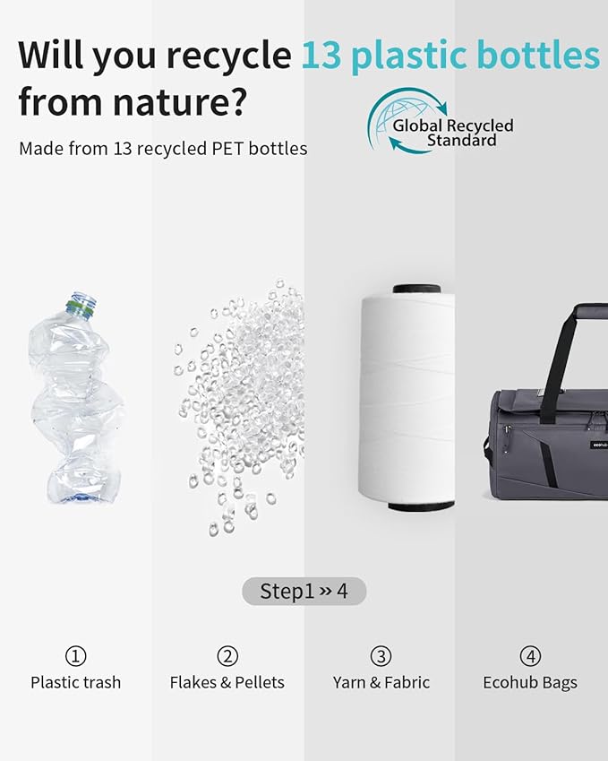 ECOHUB 40L Gym Bag for Women Men Water Resistant Sports Duffle Bag with Shoe Compartment & Wet Pocket, Travel Weekender Camping Backpack