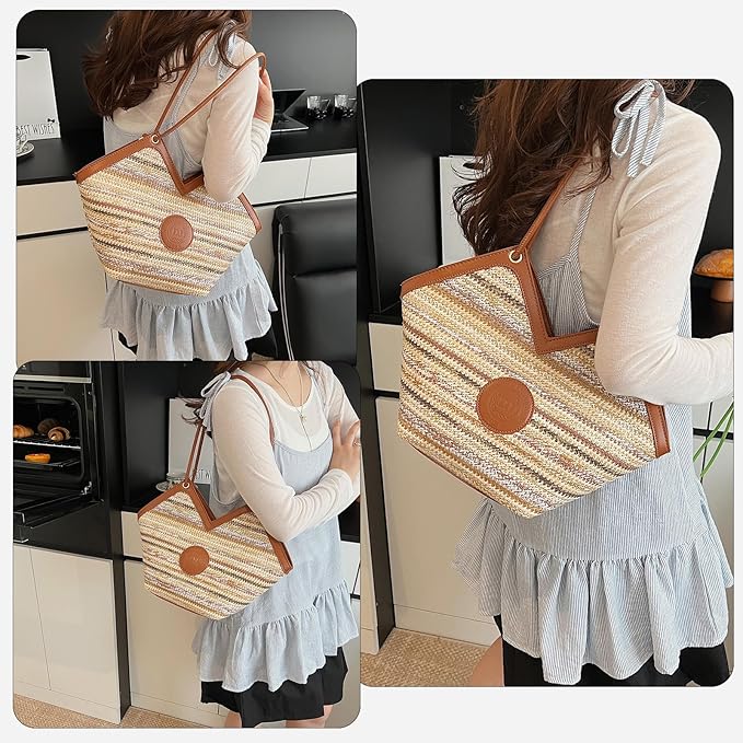 - Stylish Straw Design – Made of high-quality woven straw with PU leather trim, this tote bag combines natural texture with modern style, perfect for summer outfits.