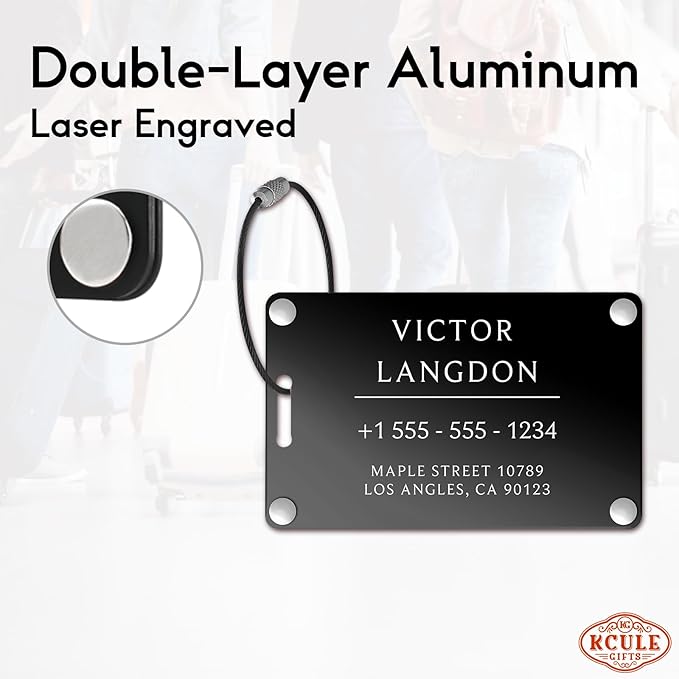 - METAL LUGGAGE TAGS: Heavy duty, double-layer aluminum construction for durability.