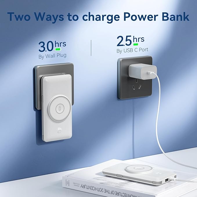 - Slim & Compact Design:This 10000mAh Magnetic Wireless power bank measures just 6.1 x 2.95 x 0.69 inches and weighs 0.6 pounds, which equivalent to the weight of an iPhone 16 pro max, makes the portable phone charger perfect for us to carry on the go, including air travel.