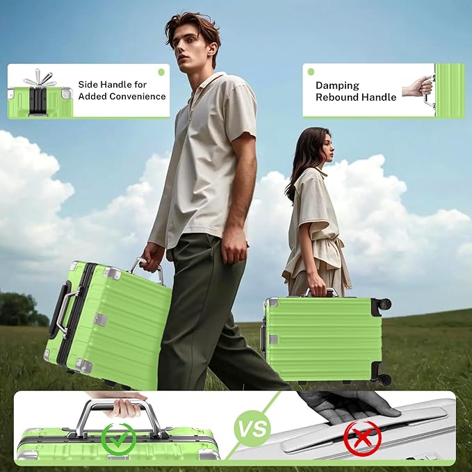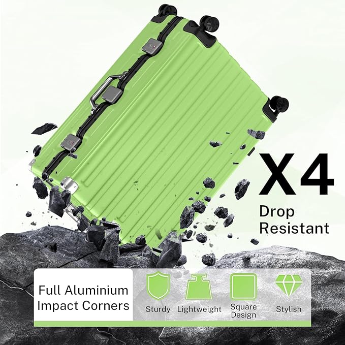 - 【Aluminum Frame Luggage】 Our luggage material include ABS+PC for high quality. PC is durable and strong to protect belongings. 70% Strong (PC) + 30% Light(ABS) makes it lighter, while reinforced aluminum frame provide added durability for demanding travel. The sturdy suitcase protects belongings even with rough handling.