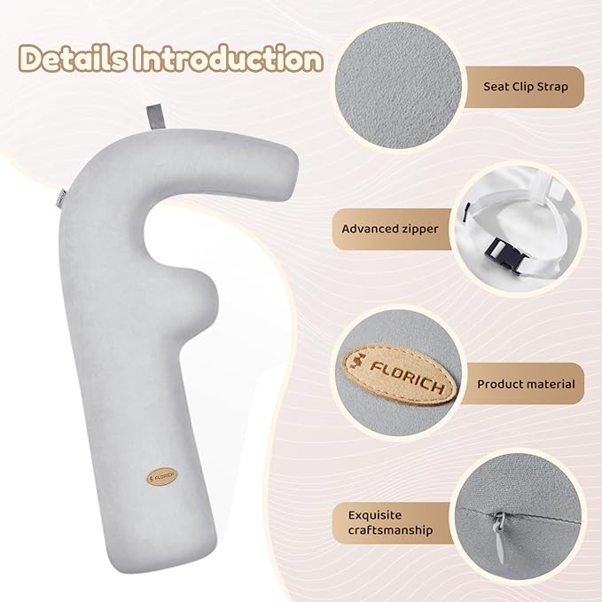 FLORICH Memory Foam Kids Travel Pillow, Car Sleeping Pillow, F-Shape Car Pillows for Adults and Children, Traveling Car Pillow for Kids with Removable Pillowcase (Grey)