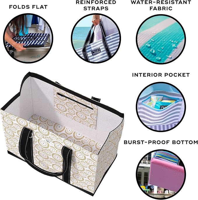 SCOUT Original Deano Tote Large - Durable Lightweight Open Top Beach, Pool & Lake Bag, Inside Zip Pocket, Folds Flat