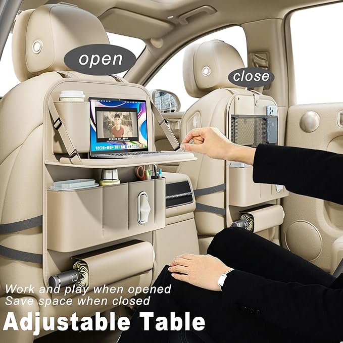 - ✔Upgraded Sturdy Foldable Tray Table: This backseat organizer foldable table can be put down as dining table.Made of upgraded firm hard board, bear up to approx 5.5lbs /2.5kg items.