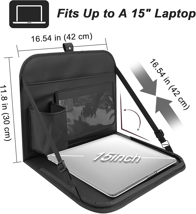 - [Multifunctional Car Seat Back Organizer]-GMQ Backseat car organizer with tray provides more storage space and easier access to items.As a platform for dining, playing, studying, and working in the car, it can be easily installed on the steering wheel or fastened to the car seat back.
