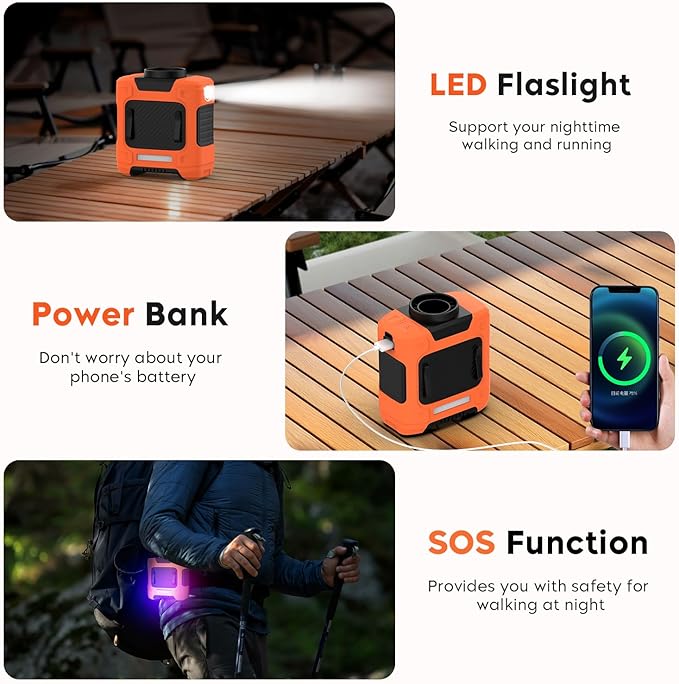 - 5 in 1 Multifunctional personal Fan: You can clip the waist fan to your shirt, belt or pants, or you can use the lanyard to hang your personal fan around your neck. With the stand on the fan clip, you can place this waist clip fan on your desk. It can also be used as an emergency power source to charge your cell phone directly, so you never have to worry about your cell phone running out of battery again. This personal fan has a built-in LED light that will provide you with long term illumination, as well as an SOS function