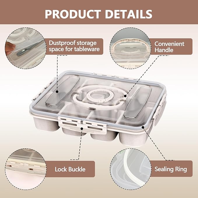 - All-in-One Portable Snack Tray with Lid: Featuring 8 separate compartments, 2 Dressing Containers, 1 fork, 1 spoon, a secure sealable lid, and a convenient handle, this versatile snackle box is your ideal companion for travel, work, picnics, or home use, keeping everything organized and mess-free