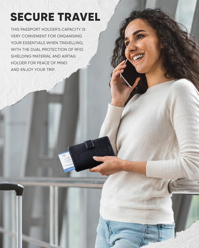 - Passport & Airtag Holder Combo Design- The built-in holder compatible with airtag to locate your passport while travelling. Keep track of your passport book cover wherever you go and never worry about forgetting where you left it.