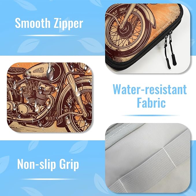 Vintage Motorcycle Travel Cable Organizer Pouch Orange Brown Car Electronics Accessories Carry Case Portable Water Resistant Storage Bag for Cord Charger Phone Earphone SD Card