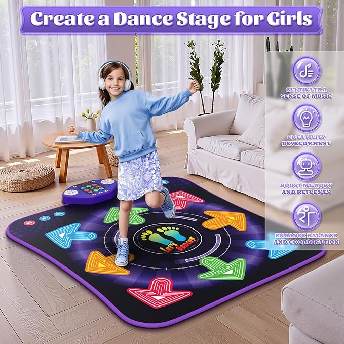 - Light Up 8-Buttons Dance Mat: Ignite your child's passion with glowing arrows! Our upgraded kids dance mat challenges 3-12 year olds to step, hop, and jump to built-in beats, boosting balance and immunity through dynamic play. Three adjustable difficulty levels grow with your dancer's skills.