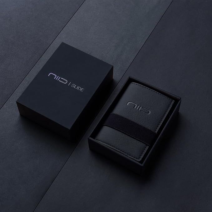 NIID Wallet for Men,Minimalist Front Pocket Wallet for Men - RFID Blocking Leather Bifold with Pop Up Card Holder, 2 ID Windows, Money Clip & Gift Box (Black)
