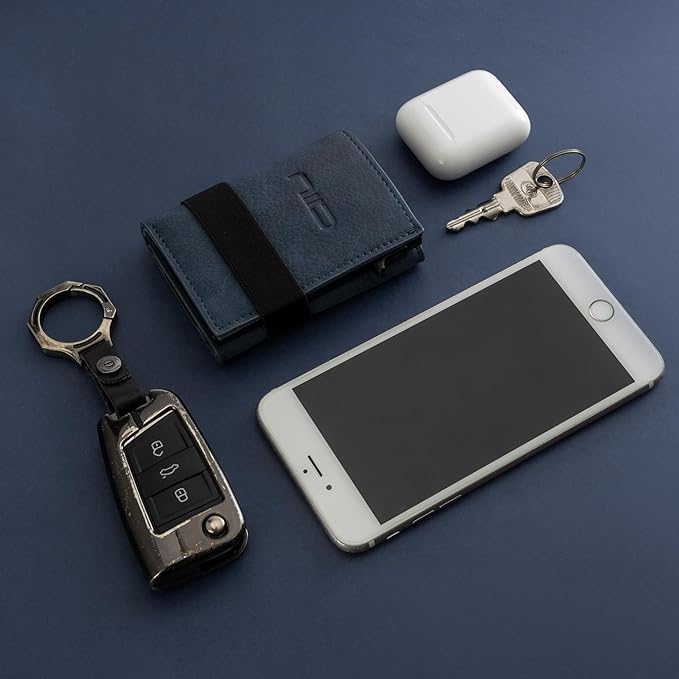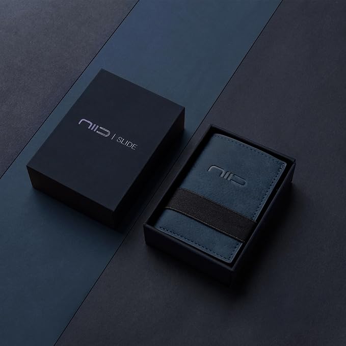 NIID Wallet for Men,Minimalist Front Pocket Wallet for Men - RFID Blocking Leather Bifold with Pop Up Card Holder, 2 ID Windows, Money Clip & Gift Box (Blue)