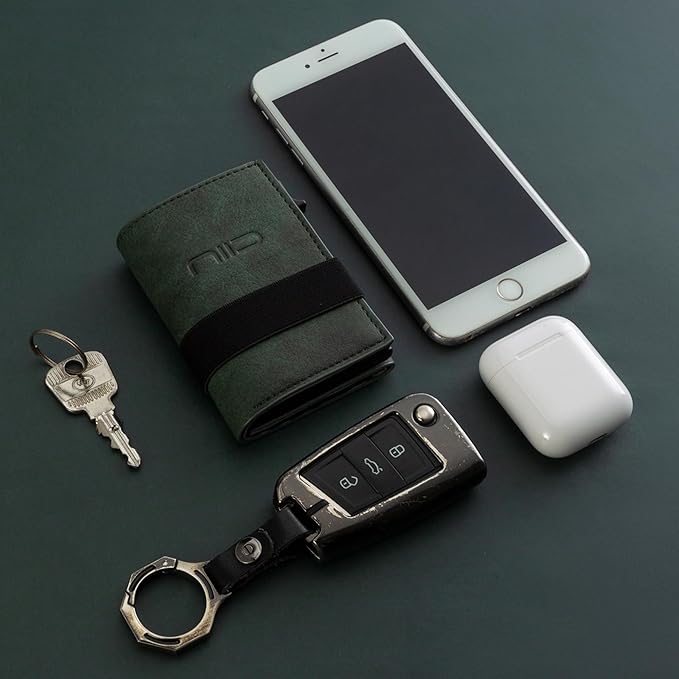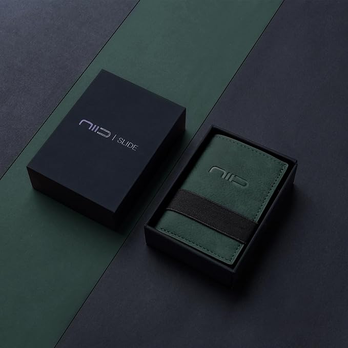 NIID Wallet for Men,Minimalist Front Pocket Wallet for Men - RFID Blocking Leather Bifold with Pop Up Card Holder, 2 ID Windows, Money Clip & Gift Box (Green)
